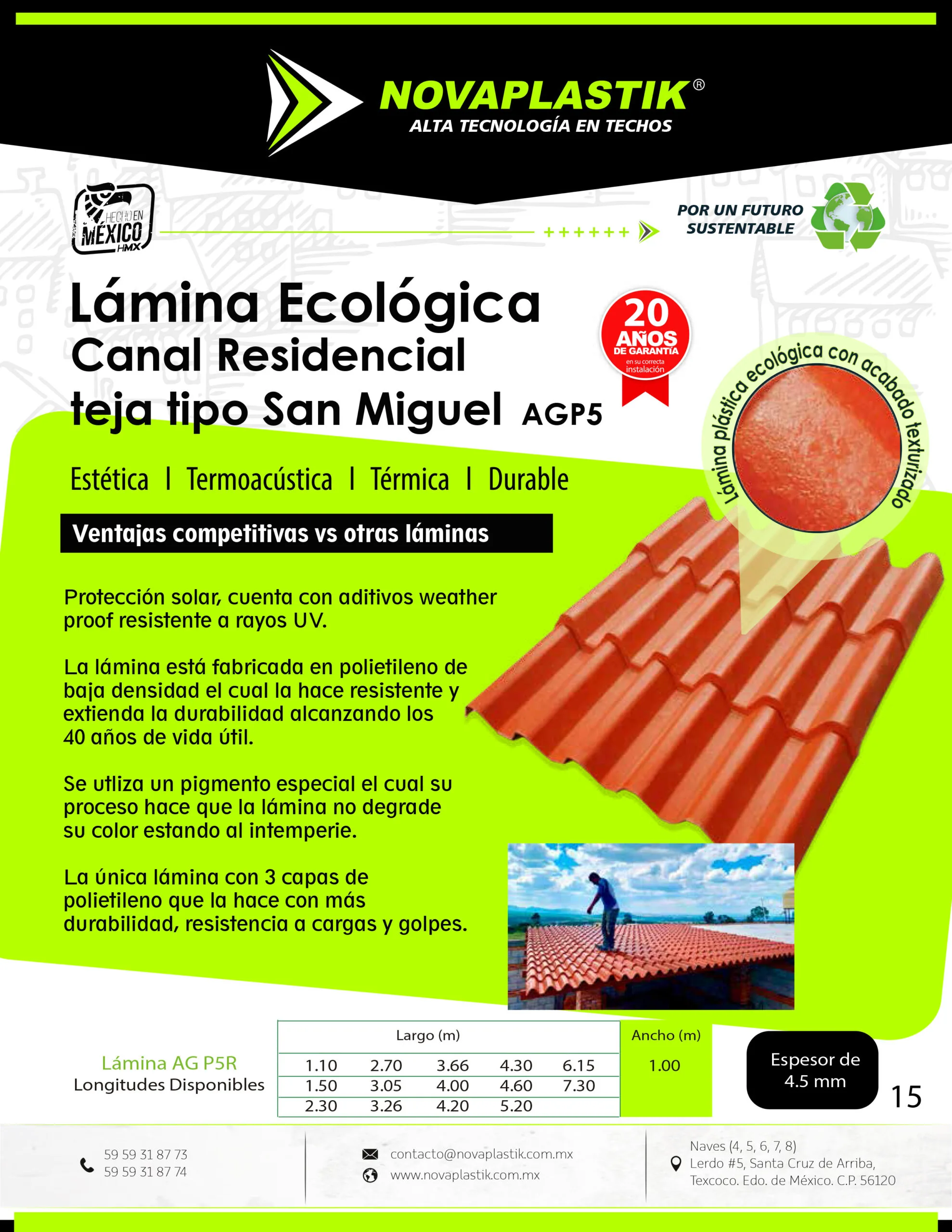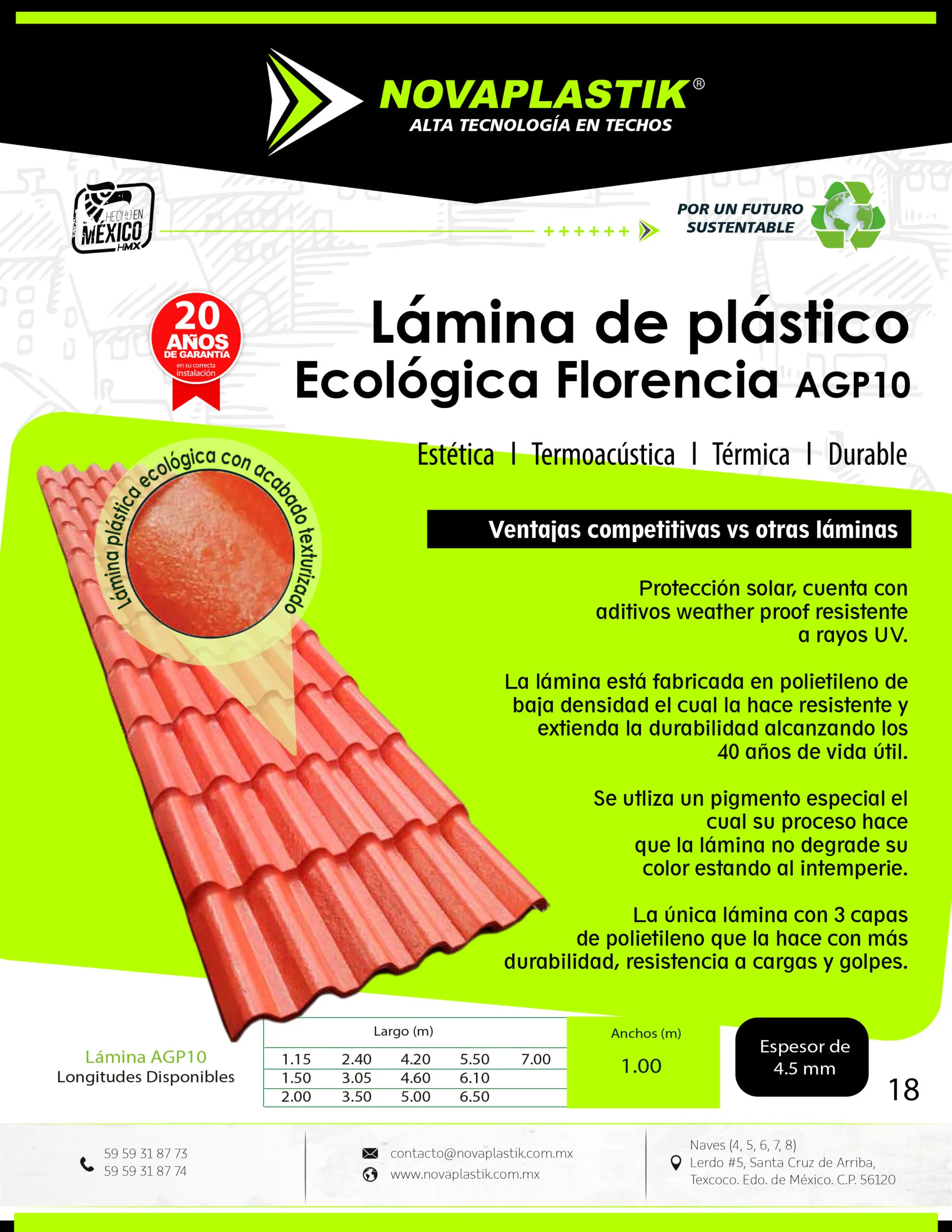 - Lámina Galvateja Plástica: Una solución innovadora que combina la estética tradicional de la lámina galvanizada con los beneficios del plástico, ideal para techos residenciales y comerciales con estilo y durabilidad. Consulta el precio de Galvatejas y sus características.