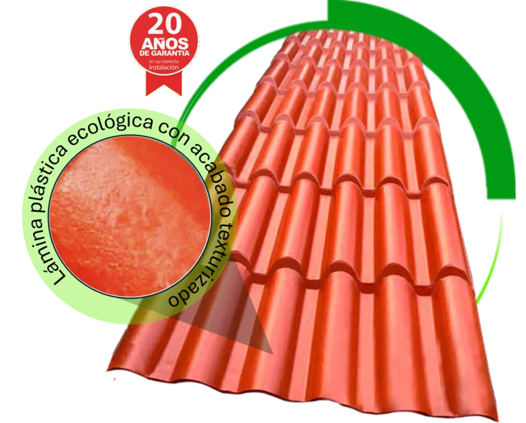 - Lámina Plastiteja: Ideales como láminas de plástico tipo teja, combinan la estética de las tejas tradicionales con la resistencia del plástico. Perfectas como lámina de plástico para techo, son ligeras, duraderas y de fácil instalación. Con su diseño de canales circulares y escalonados, imitan la apariencia de las tejas tradicionales, ofreciendo una estética atractiva y duradera. Consulta el precio de Plastitejas, sus medidas y beneficios.